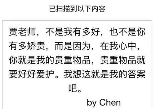 晚上洗澡,在宿舍嚼水果,突然收到他的消息。打开微信,就是一个二维码的图片。他让我扫描二维码,我照做了,得到了以下内容: