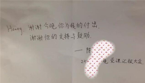 我们一起上党课的时候,他做报告,我什么也没做。当他讲完课坐在座位上时,他突然给了我一张小纸条。忽略这个难看的字体。。。我用脚写的东西都比他好看)